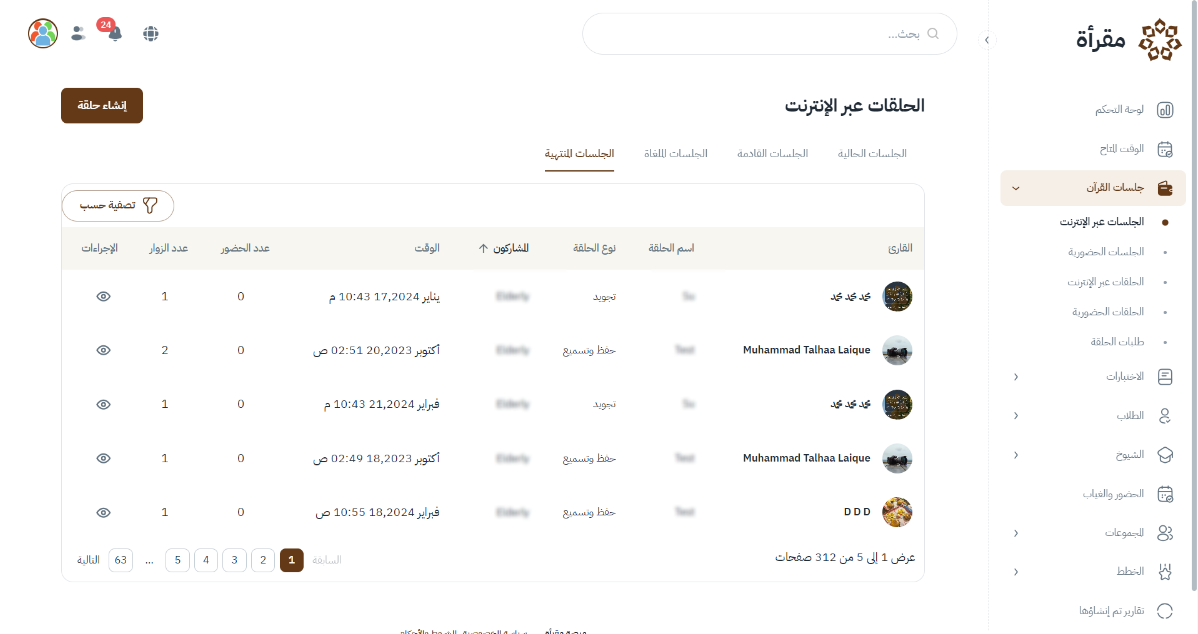 تظهر هذه الصفحة معلومات آخر المسجلين في البرنامج :