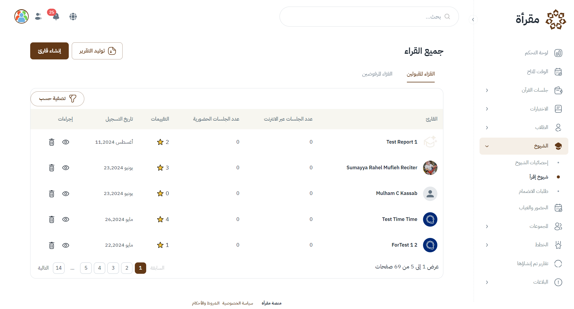 - التأثيرات : يوضح الاجراءات التي يمكن للمشرف اتخاذها ( حذف _ تعديل )